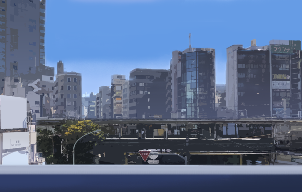 シリーズを彩る背景の数々。主に自分で撮った写真を元に描いています。